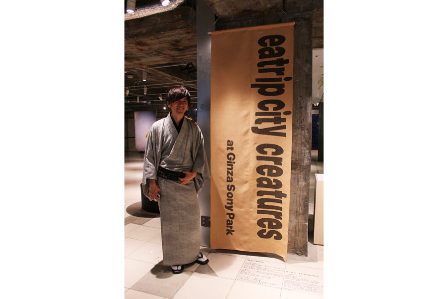 期間中は、展示会場のPARK B2/ 地下2階を中心に、食や街をテーマとしたライブ、トークイベント、ワークショップなど、さまざまなイベントを実施。二代目の泉二啓太も展示・インスタレーションでお手伝いをさせていただきました。地下2階の会場中央のタペストリーは、地色も文字も媒染材を変えた柳の染料で染め出したものです。ご来場の際はぜひご覧いただけたらと思います。