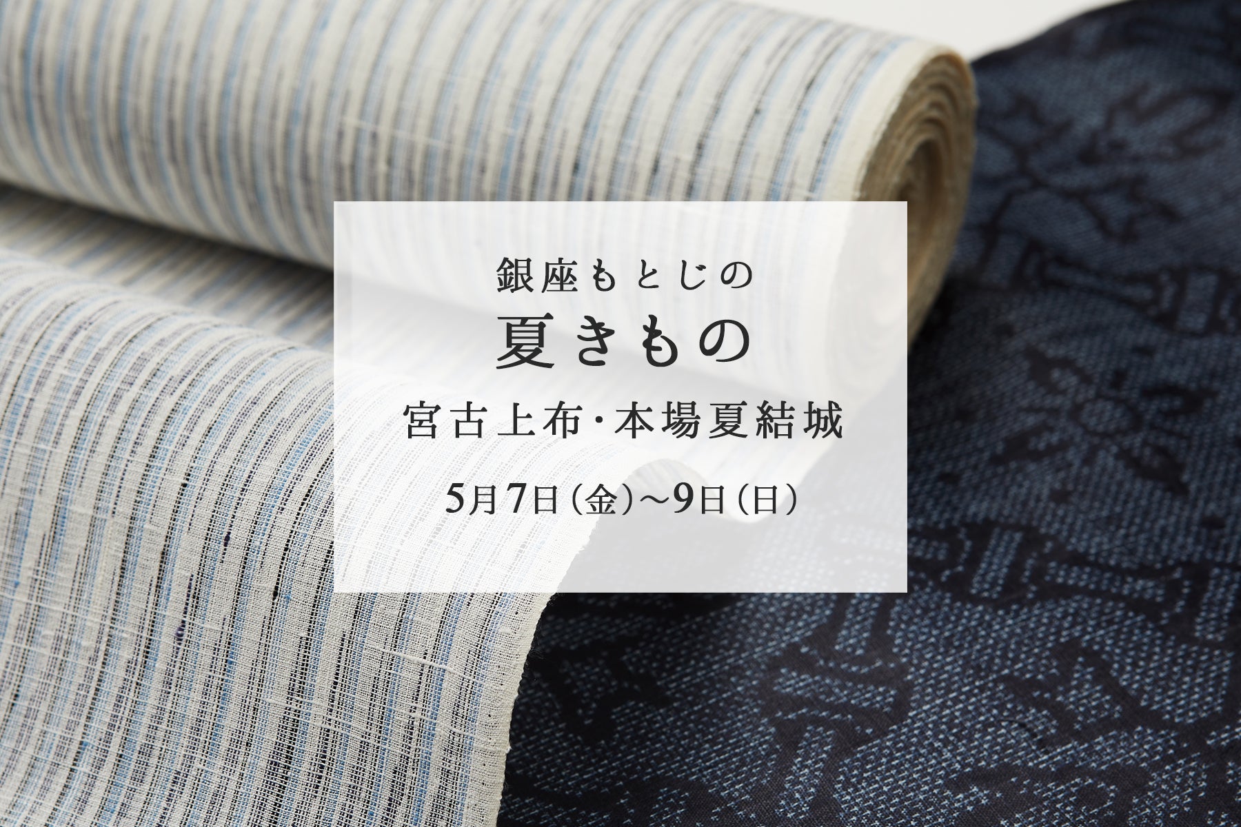 「銀座もとじの夏きもの 極上の宮古上布・こだわりの本場夏結城」展はおかげ様で盛況のうちに終了いたしました。ご来店いただきました皆様、オンラインショップで作品をご覧いただきました皆様に心より御礼申し上げます。