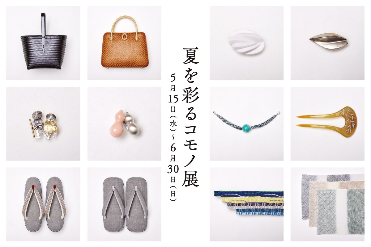 麻や紙布などの自然素材、天然石や陶器の帯留、木竹工による繊細なバッグなど、涼やかな色彩や風合いをコモノにも取り入れて、夏の装いをさらに楽しみませんか。