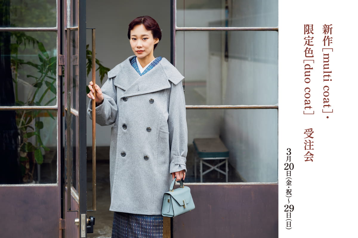 “道行きコート”の感覚で、シーズンレスにお楽しみいただける新作[multi coat]が登場いたしました。