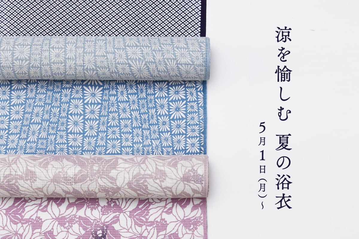 綿コーマ地・綿紅梅・麻・縮など自分の肌に一番合う上質な素材を探すのも、浴衣選びの楽しみの一つです。