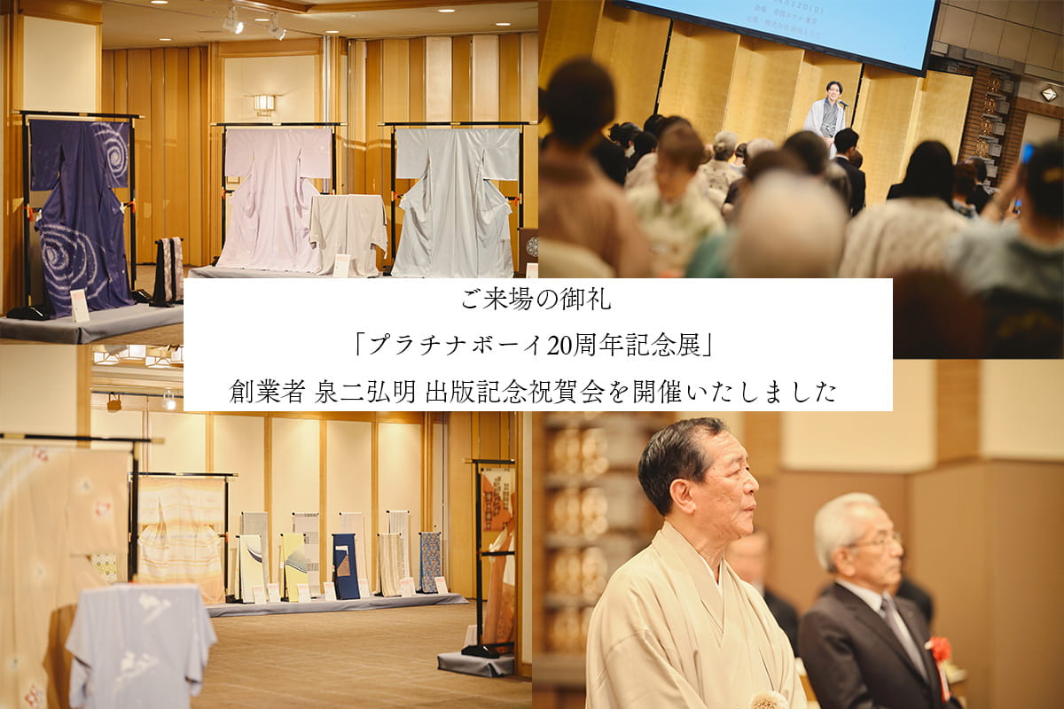 2026年4月12日(日)、帝国ホテル 東京「孔雀の間」にて、 「プラチナボーイ20周年記念展 銀座もとじ創業者 泉二弘明 出版記念祝賀会」を開催いたしました。