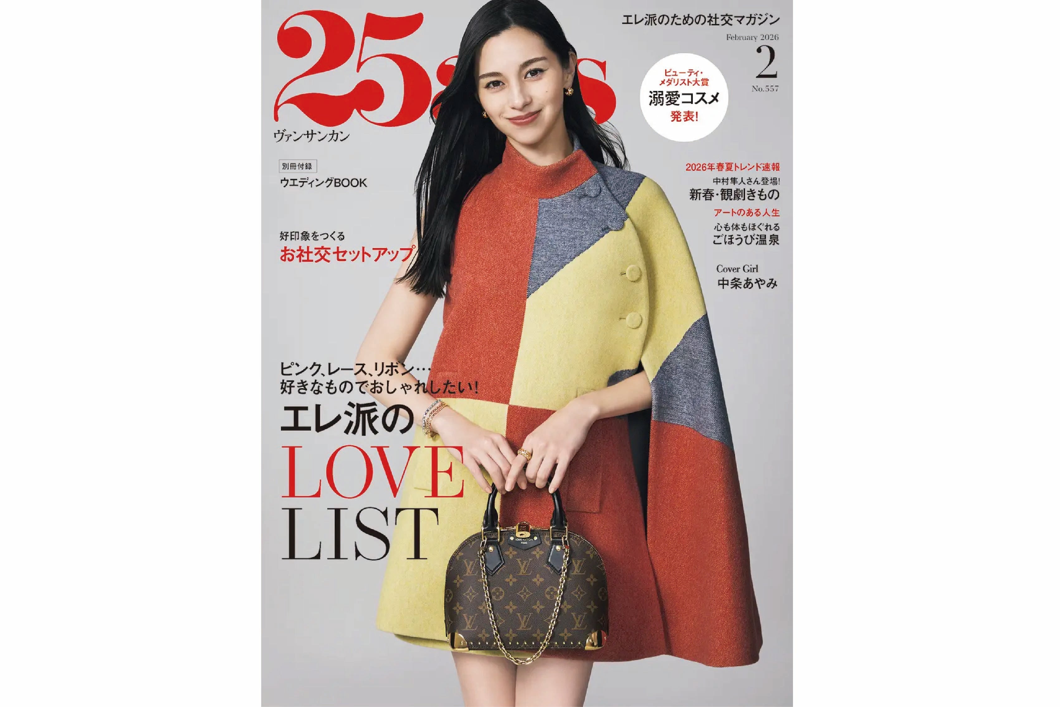 雑誌「25ans(ヴァンサンカン)」の特集「観劇新春きもの」の94ページで、「着る人を選ばない 優しく正統な付け下げスタイル」として、ご紹介いただきました。