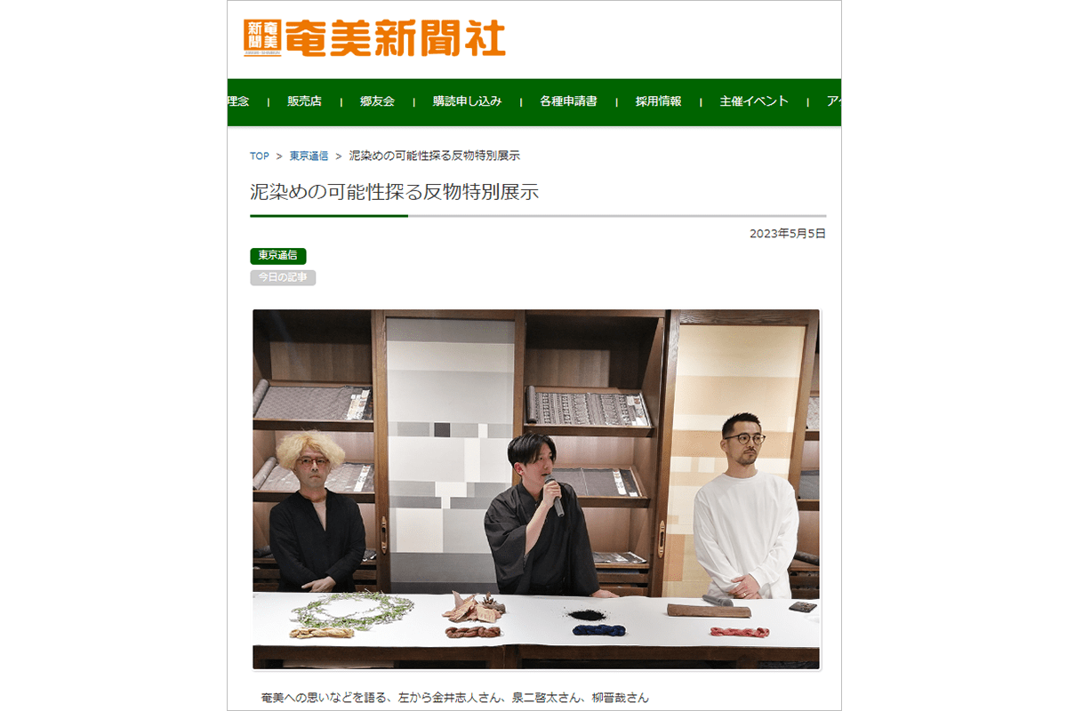 2023年5月5日の『奄美新聞』にて4月に開催した『泥中の布-HIRAKI project-』でのレセプションパーティーの様子を取り上げていただきました。