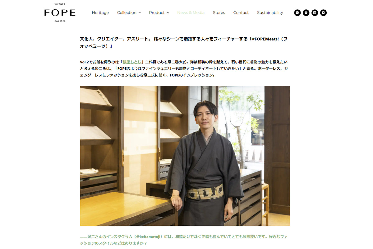 イタリアンジュエリー「FOPE」のWEBサイト内、「#FOPEMeets!(フォッペミーツ)」にて、二代目・泉二啓太のインタビューが掲載されました。