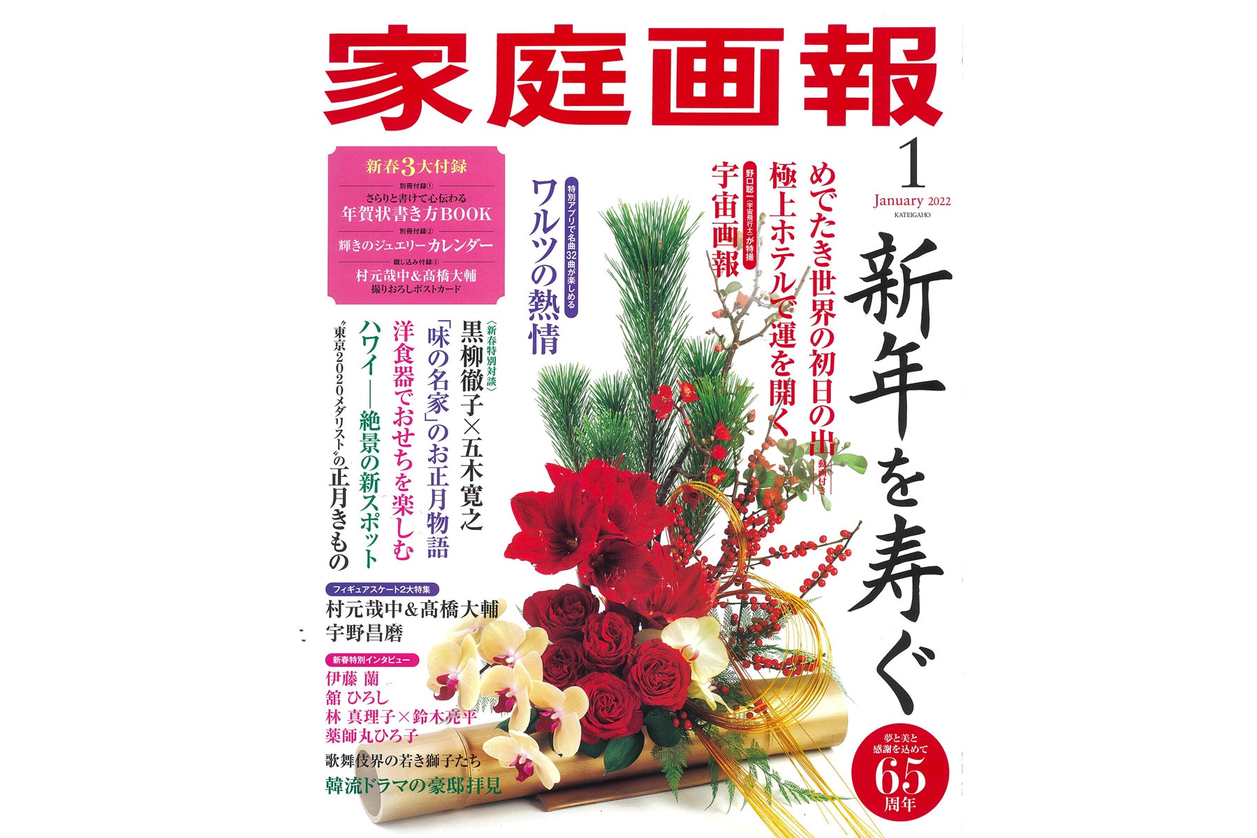 家庭画報2022年1月号では、「"東京2020メダリスト"がまとう正月のきもの」を特集。