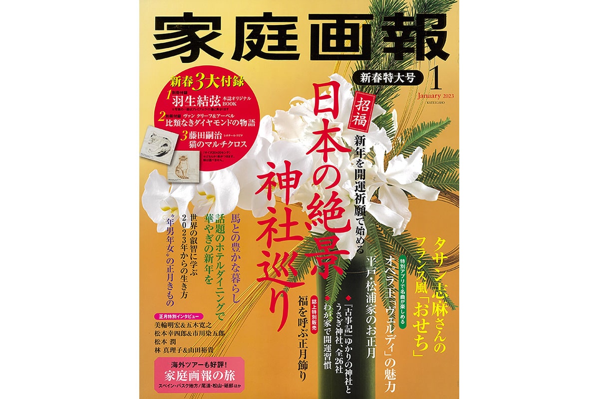 12月1日発売の「家庭画報 1月号(新春特大号)」の特集「‟年男年女”の正月きもの」では、卯年生まれの今をときめく方々が華やかな装いで誌面を飾っています。