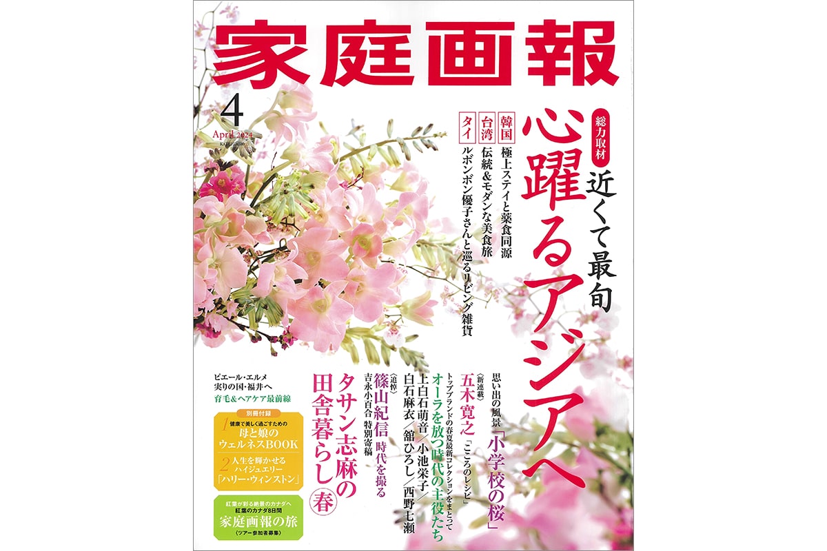 3月1日発売の「家庭画報 4月号」にて常盤貴子さんと仲間由紀恵さんに着物と帯をお召しいただきました。また今年で30周年を迎える「銀座の柳染」もご紹介いただきました。誌面を手に取ってぜひご覧ください。