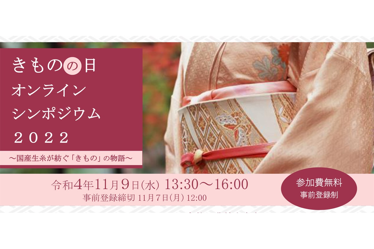 農林水産省では、全国シルクビジネス協議会、和文化・産業振興連絡協議会と共催で、和装文化を支える国内養蚕業・絹業の振興に資するよう『「きものの日」オンラインシンポジウム2022~国産生糸が紡ぐ「きもの」の物語~』を開催します。