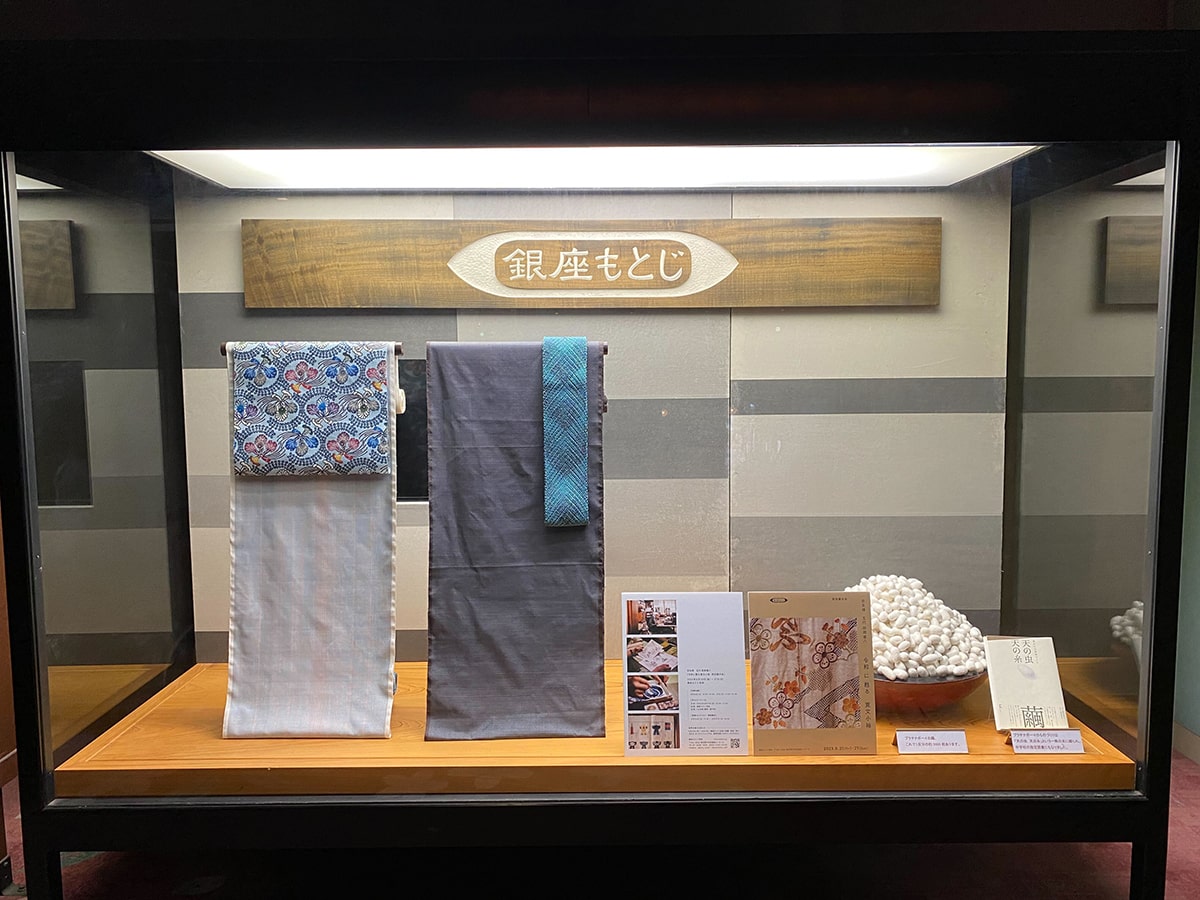 銀座もとじでは、国立劇場・大劇場のショーケースにてお店の紹介や 季節のコーディネート、企画展のご案内をしております。 月に一度のペースで変更しておりますので、お立ち寄りの際にはぜひご覧くださいませ。