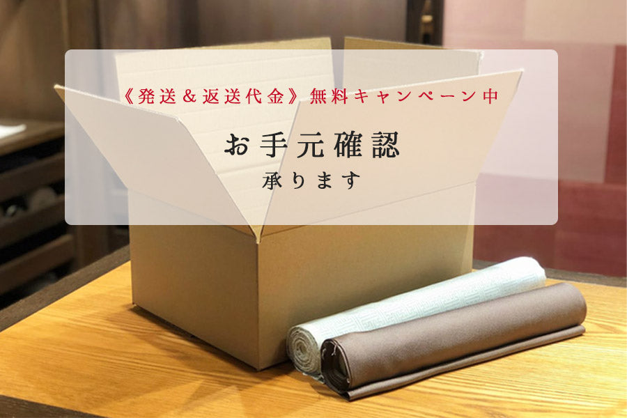 外出せずにご自宅で、購入前の商品を直接ご覧いただける「お手元確認サービス」をご利用になりませんか?画面では伝わりにくい風合いやお色味、お顏映りやお手持ちの帯・着物との相性をお確かめいただけます。