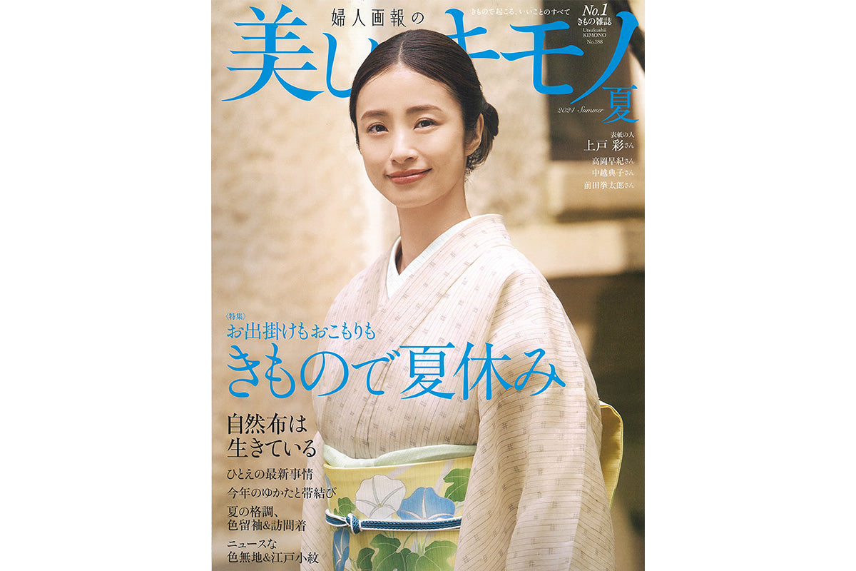 「美しいキモノ2024年夏号」にて、上戸彩さんに、絽の付下げと絽綴の帯を、高岡早紀さんに古代越後上布のきものと葛布の帯などを着用いただいております。