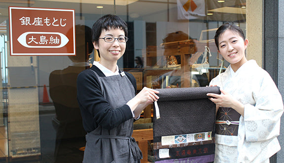 2018年3月11日に「織り上げ式」を行いました、銀座生まれの大島紬第2作目を、ご縁をいただきました野村様にお納めすることができました。野村様のご希望で、お仕立て前の反物のままでご納品させていただきました。