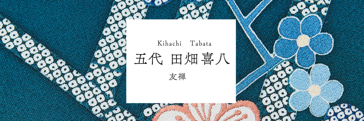 着る人が「華主」。お召しになる女性が「華の主」として一番美しく輝いて見えるように最大限の力を尽くしてものを作る。それが自分の仕事と言い切る五代 田畑喜八さん。 京友禅を手掛ける染屋として、田畑家では「藍の濃淡・摺疋田・縫い箔」を得意としてものづくりをされ、中でもライフワークとして手がける“茶屋辻染め”は独特の藍彩の美しさが際立ち、伝統的な古典文様を個性的に演出した品格のある粋を感じさせる出色の作品です。江戸時代から大切に使い続ける「藍の墨棒」で加筆することで図柄に陰影を添え、藍の濃淡を基調とした気品あふれる、格調高い、優雅でありながら芯に力強さのある着物を作り上げます。