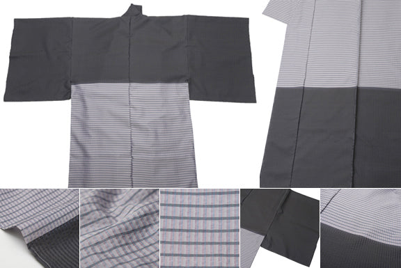 また、こちらの熨斗目の作品は、熨斗目の位置、巾にも大変こだわって制作されております。京都西陣の機屋で、古代染織を研究され、独創的で美しい織物の制作に情熱を注いでき桝屋高尾の高尾弘氏自ら、その熨斗目の表情の細部にこだわり、仕立上がりに最も美しいラインが生み出されることを追及した考え抜かれたデザインとなっています。