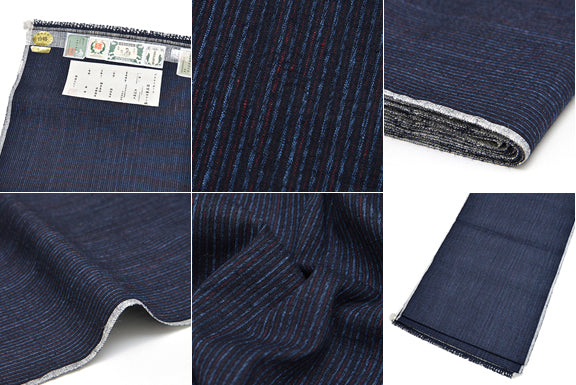 創業者 泉二弘明のおすすめの逸品 プラチナボーイ結城紬 地機 生掛 「絡み縞」 紺×紅×水色(広巾)