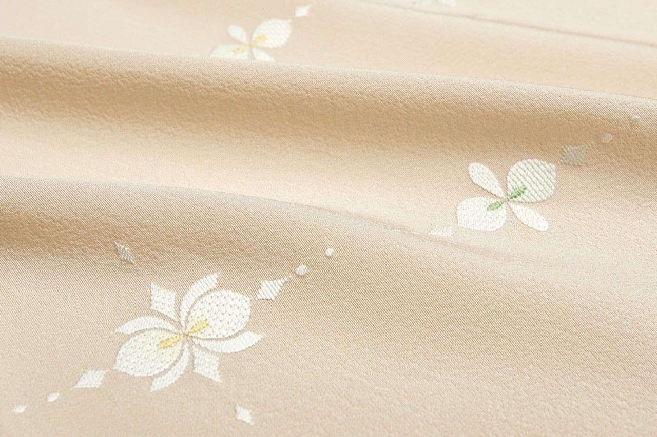 刺繍の着物や帯は、立ち姿、振り返る姿――纏う人が動くたび、その瞬間ごとに光の角度が変わり表情が変化。模様のひとつ一つが、さざなみのように静かに輝き続けます。