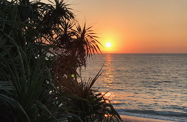 奄美大島を代表する植物、アダンの木々。海岸近くに生え、パイナップル形の実をつける。
