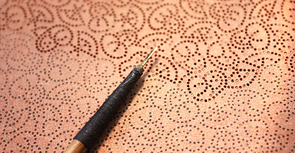小さな丸の連続によって図柄が構成されている小紋型に用いられ、技法では「鮫」「行儀」「通し」等の種類がある。 刃先が半円形の彫刻刀で、あて場に両ひじを固定して型地紙に垂直に立てて、小刀を右回りに1回転ちょっとくるりとさせて丸い穴をあける。