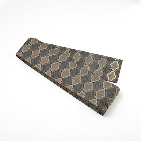 下に3色ランダムに入れて、そのうちの1色で菱を織りなした意匠で、女性ものなら菱を目立たせますが、男性ものは菱の色を抑えてシックに仕上げています。