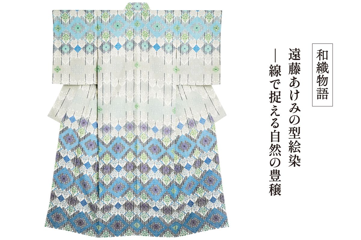 遠藤あけみ作 型絵染着物 「春野万華鏡」 1,480,000円(税・仕立て代込み)