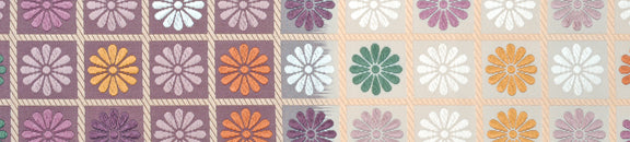 宮廷の儀式や日常の服飾に積極的に織物を取り入れていた平安貴族は遣唐使廃止で唐との交流が途絶えると、徐々に色調や文様を自分流に変え「和様化」して行きました。平安中期には女房達が独自の美を競って「唐衣裳(からぎぬもの)襲(かさね)着」を始め、これが十二単になりました。襲ね着を綺麗にするには一領(いちりょう)一領に軽さと柔らかさそして色の調和が求められます。そこで職人達が工夫を凝らした様々な技法を編み出し、これらが有職織物になりました。特に平安時代になって新しく登場した「二陪織物(ふたえおりもの)」はその代表的なもので、地織と文様織を別に作り地文様の上に上文(うわもん)と呼ばれる文様の部分だけを別糸を渡して縫取りのように浮かせて織り出します。襲ね着の一番上に着る装束のために考案された織り方で、表面が艶やかで柔らかい感じになり、殊に華やかで優雅です。有職織物は、「二陪織物(ふたえおりもの)」「綾(あや)」「浮織物(うきおりもの)」「うすもの<(羅(ら)、縠(こく)、紗(しゃ)>」など多岐にわたり、“シンプルな文様の美しさ”と“色の調和美”が魅力の織物です。「俵屋十八代の仕事」とは